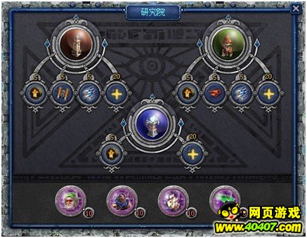 研究院:贯穿整个游戏的重要功能,使用研究院可以提升防御塔能力上限,拓展游戏功能。合理分配金钱升级各项科技也是考验玩家理财与探索能力的一种乐趣。