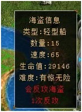打击海盗:击败每批入侵海盗即可获得一定量的银币,如果自己估计无法击败这批海盗可缴纳100银币来“花钱消灾”。在研究院升级拆船技能,可以增加每波海盗的金钱数;