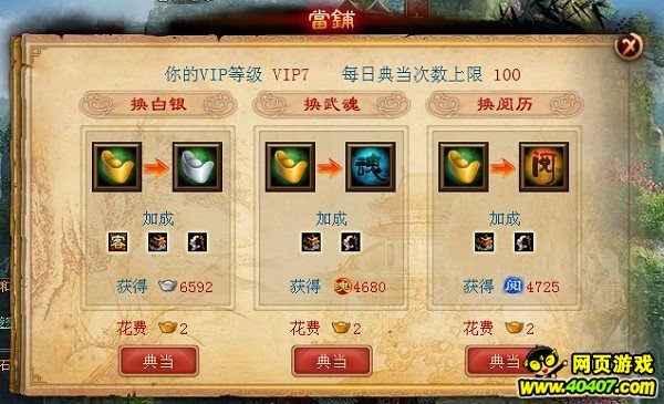 10、典当:先前所说的各种收益都可以拿来进行云游,保守估计百来黄金是可以赚到的,利用这百来黄金典当,差不多能够赚取10万银子。