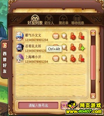 西普好友——是你在西普大陆交到的所有朋友,可以查看并管理他们,喜欢就加他,不喜欢就删掉。