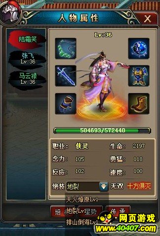 技能,分为绝技和必杀技,绝技是蓄满怒气达到100即可释放,释放后有概率释放必杀技.