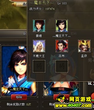 如图可见,出了浑嫱MM的战力超出20W,主将的技能是横扫,我的技能选择是合击,魔主安排在替补技能选择强攻(如果换其他技能最后单挑240肯定输出不够,当然你要是战力高的话我也没办法,我所说的是最好的选择!)