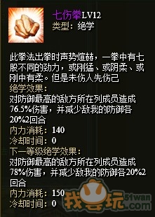 七伤拳(不太推荐此技能,属于伤低伤己的技能)