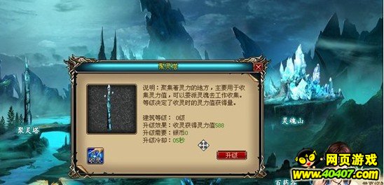 聚灵塔,聚集灵气的地方,主要收集灵力值。从这里,可以委派灵魂去收集工作,等级决定了灵力值的获得量。优先升级聚灵塔和储灵堂是必须的。