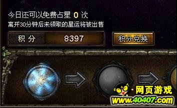 至于占星,我没发现什么技巧,有人说星星闪到最亮的时候或者最暗的时候点,又或者垫厄运,我都试了,没什么效果。我身上几个都是自己占的,连点上去的。占星还是讲运气。不想讲运气?那简单,只要你有500万金钱,占星除了橙色留其他全卖掉,500万花完刚好你有7000积分可以兑换一个你仰慕已久的星星。当然占星过程中还有几个橙色会被你占到的,我试过500万占星只留橙色出了雷神,泰坦,战神!所以说,占星最重要的还是看RP。