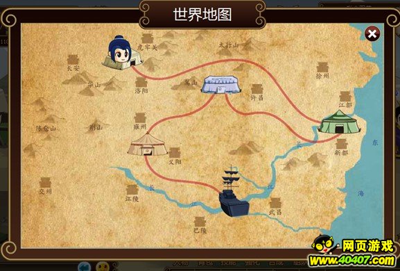 通过点击地图按钮,我们可以打开游戏的世界地图。