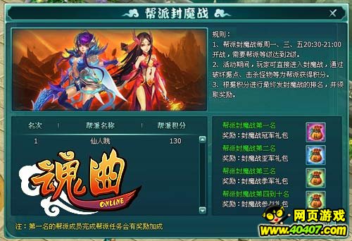 大战之后,最振奋人心的就是封魔榜以及天帝封赏。天界会有专门的仙官统计各门各派的战功,排名前10的帮派会留名封魔榜,以及获得丰富的奖励。同时大大增加帮派的名望,让这些帮派名震天下。