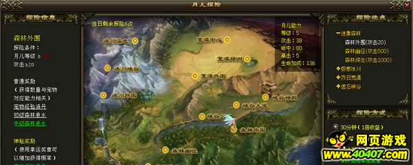 点击进入宠物界面后选择月儿后在右下角可以进入探险界面。