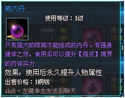 提升容易突破难,肉身突破不仅要改变体质,更要明心见性,大彻大悟。虽说熊内丹、蜂王浆之类的物品是难得的大补之物,但毕竟是凡间物品,仅仅能不断的 提高肉身状态,当玩家的肉身状态达到当前境界的最高程度时,就必须寻找可遇不可求的菩提丹为助力,冲破修炼瓶颈,进入下一个肉身境界的修炼。