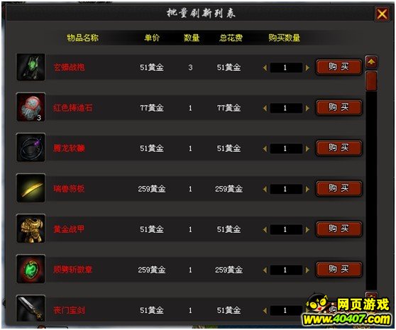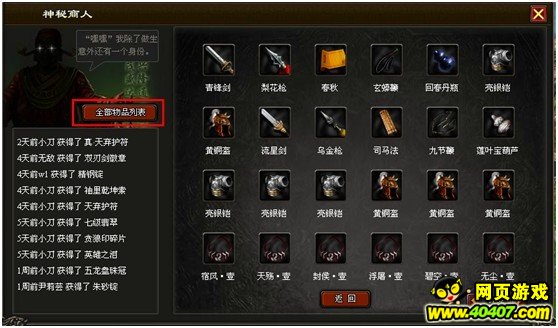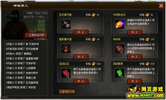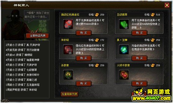 点击全部物品列表可看到神秘商人处卖的所有道具。