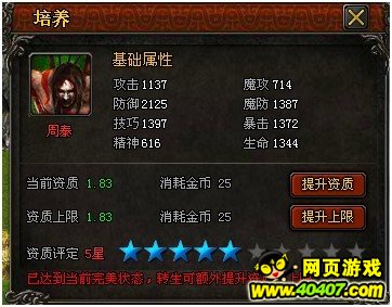 当前武将资质提高,武将属性也会随着培养行为的发生而升高。