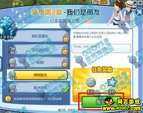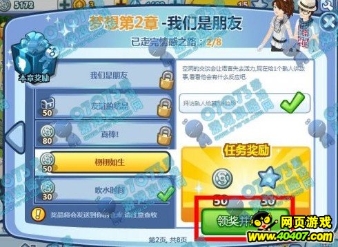 完成任务后千万别忘记了领取奖励和开启下一关任务哦!
