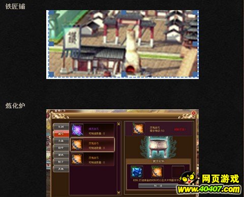 2.玩家的城市达到一定等级后,可以开启铁匠铺功能。铁匠铺可以用来锻造装备,只要拥有某种武器的锻造配方,在学习 后就可以在铁匠铺通过使用锻造材料来锻造已学会的道具了。锻造材料通常通过攻打山寨和副本得到。