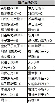 游戏中总共开放游戏人物外套共计100件,其中灰色装束36件,蓝色装束35件,橙色装束29件。