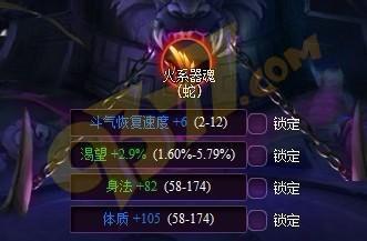 激活之后可以获得不同的属性:(有绿色、蓝色、紫色、金色等不同颜色的属性,属性种类有暴击、命中、身法、斗气恢复、体质、闪避、格挡等等)