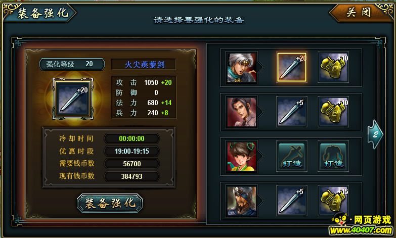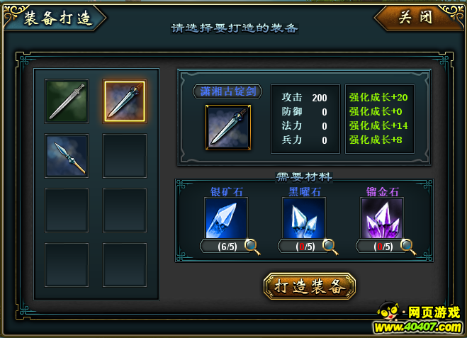 再点击未穿着装备的将领头像边的“打造”按钮,打开打造界面:
