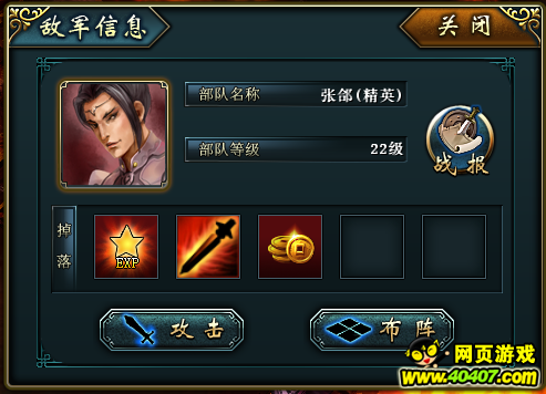 点击“布阵”按钮,进行排兵布阵,寻找敌人的弱点,增加过关成功率。