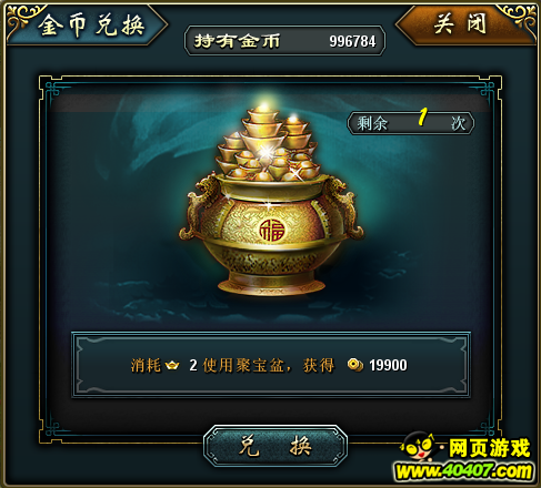 每次可消费一定数量的金币兑换大量钱币。
