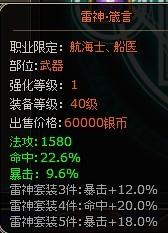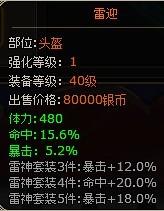 雷神套装额外增加的属性是很bt的,就算按单件属性对比同等级的40橙装,属性都要高出不少。特别是雷神套装增加的最多的属性是暴击、命中。