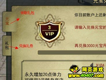3、礼包、奖励领取方法: >>点击查看 兑换礼券之后点击元宝,可以在下面看到领取按钮,如图: