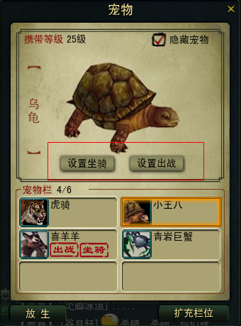 还有一个,大部分宝宝都是既可以作为宝宝,为人物增加属性;同时也可以作为坐骑,提高人物跑动速度。