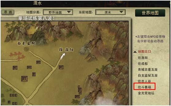 12、 地下拳场:低级拳场(25-39级),在各主城(350,356)处,拳场怪共40波,每10波一个boss,前面的小boss有机会出+9白装或绿装,最后一个boss必出绿装,有很大几率出+9极品装。如果是远程职业,可以跑着打,站着不动的话容易死,一边跑一边群怪,用鼠标的话有些位置可能点不到,建议使用键盘WASD控制方向。