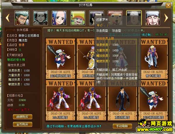 手里的伙伴实力太弱肿么办?50PK《海贼王传奇》全天候为您开服火爆竞技场,靠战斗力去赢得伙伴,给力伙伴打拼出来!!