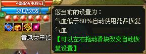 F、气血与法力的阀值,一般定义到80%即可,如果是打副本的话,就点选从大到小自动使用物品,如果只是野外挂机练级的话,就点选从小到大自动使用物品吧~