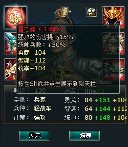 根据不同国家,可以在外务府中进献铜钱以获得帝王名爵的封赏,顺序必须由低到高逐步开启,玩家也可使用元宝直接开启最高级的大巫哦,成功赠送礼物后,会得到他们封赏的武魂,武魂的种类和品质各不相同,当然,位阶越高,封赏得到高级武魂的几率越大。武魂的作用是增强将领计策,不同的计策对应了不同的武魂,以下是武魂与计策的对照表:(红色名字的武魂可是最新增加的强力技能武魂哦!)