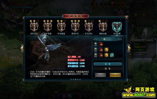 选择矿洞禁地的“古天机殿”副本,点击右下角“开始”按钮。搜寻恶魔“古刹”的任务便落在了你的肩上。