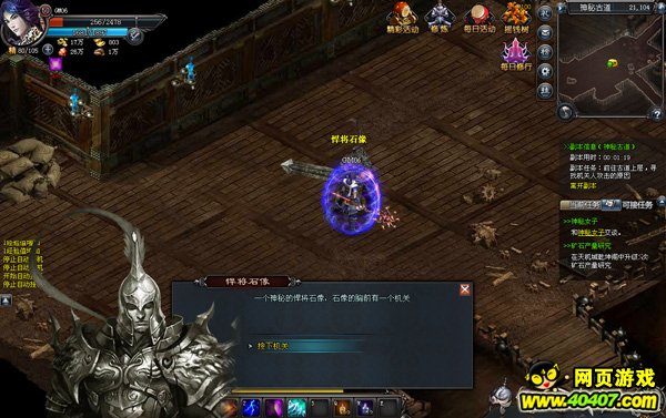 在发现“悍将石像”后按下机关,并杀死所有因触发机关而引来的“古代机关人”与“古代机关兽”。开启最后的屏障,答案就在眼前了,悍将们,上吧!