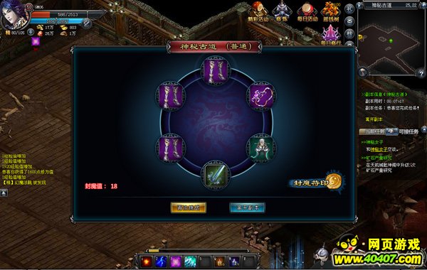 打开副本界面,选择“神秘古道”,点击右下角的“开始”按钮,便可进入古道一探究竟。