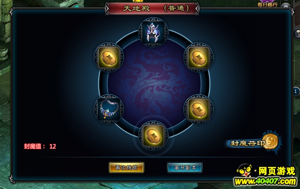 进入山神庙副本界面,选择“天地殿”副本后点击“开始”按钮,开始新的征程!