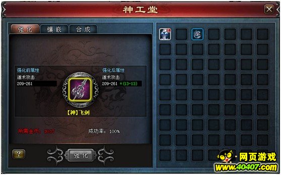 玩家可以在天机城中的神机坊中进行装备强化。装备强化后可以提高装备属性,全面提升角色能力。强化装备只需要花费金币就可以了。不过小编在这里提醒大家:强化装备有可能失败哦,不过装备强化失败装备不掉级,不消失。