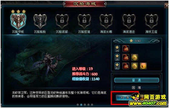 从沉船甲板副本开始,当副本评价为三星时,就可以开启该难度副本的扫荡功能。扫荡花费的精力值与收益与通关副本相同。但是扫荡时玩家角色不可移动哦。