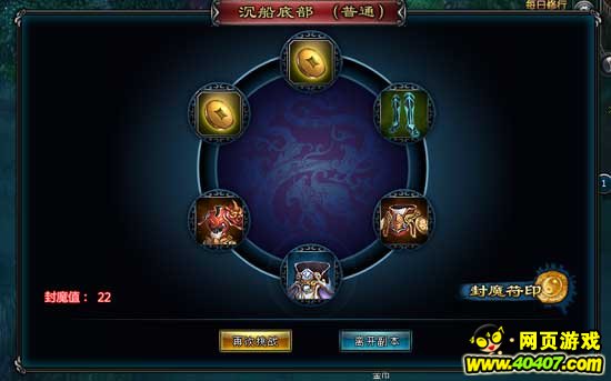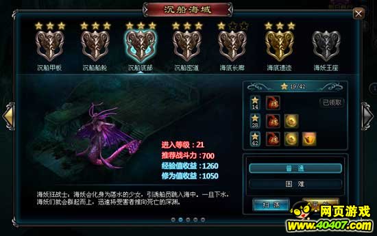 “海妖狂战士”总是率领众海怪扰乱中州海域人员船只的安全,悍将们行动起来吧。维护中州的安全,消灭魔族。进入副本界面,在选择“沉船底部”副本后点击“开始”按钮。