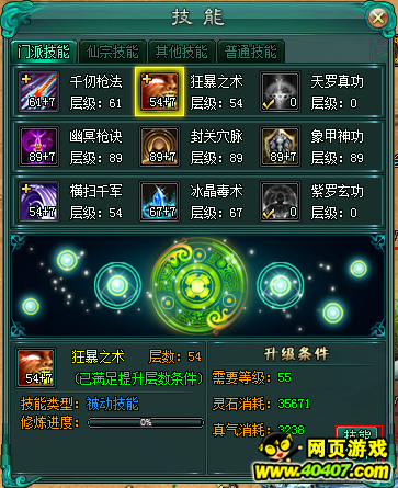 4. 学习与升级技能,需要消耗角色真气与灵石;