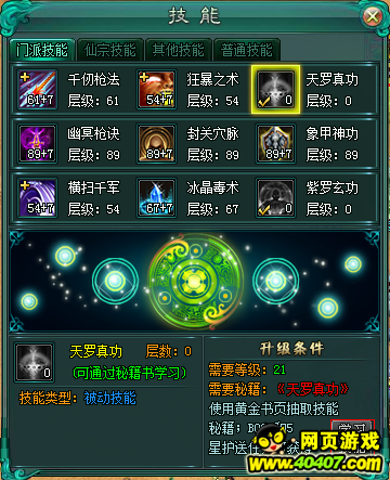 2. 门派其它被动技能、仙宗技能、其它技能可通过在游戏中的历练获取;