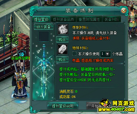 也就是说您可以将20级满星的装备提升为40级满星的装备,让您之前的付出不会浪费。装备升阶的成功率根据装备等级的不同而不同。