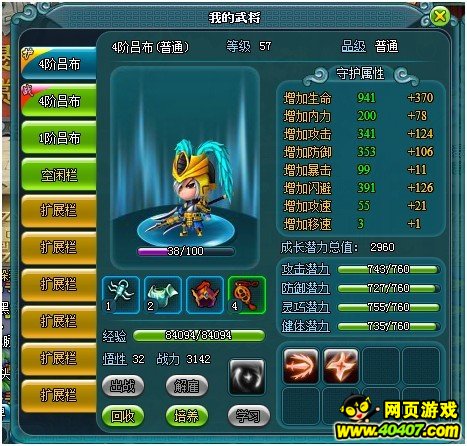 守护状态下的武将将会根据自身成长潜力来提高人物对应的能力。