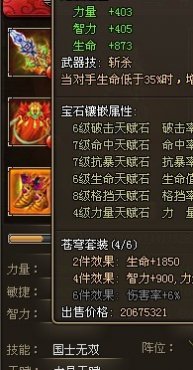 最后我得出结论:韩信武器的斩杀技能除了普通的增加20%的攻击外,就是当韩信自身血量低于35%的时候,其技能国士无双回血系数45%的基础上,还能回血其系数的20%。结合图中数据就是20804*20%=4160.8,也就是附加回血的4160点。