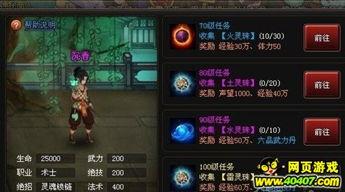 邀请方法:无需声望要求,在玩家通关扬州城鲲鱼之腹1层(需要玩家达到76级)之后开启特殊伙伴任务-------“成仙志”,收集火灵珠、土灵珠、水灵珠、雷灵珠之后招募。或者花费1600元宝直接获得.