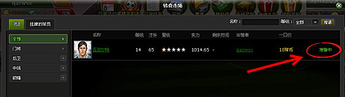 在拍卖默认“浏览”界面,可以查看当前挂牌的球员,并购买。在转会市场,只能通过“球币”进行交易,球币由充值获得。