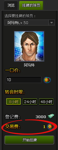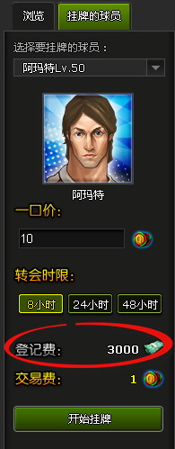 球员挂牌时,要缴纳一定的资金作为“登记费”,若最终交易成功,则“登记费”返还,否则不返还。