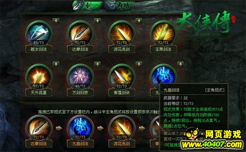 前期技能安排:[万剑归宗] [天外流星] [青莲剑决] [浣花洗剑]