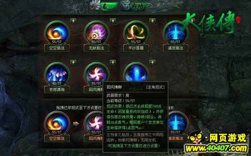 中期技能按排:[空空扇法] [灵犀分水] [回风拂柳] [风雷扇法]