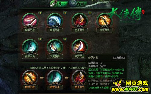 初期技能组合:[解牛刀法][傲寒六诀][燃木刀法] [血杀刀法]