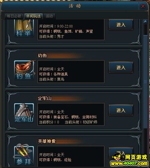 英雄神像:王城共有3个神像,每隔30分钟可以瞻仰一次,得到铜币和经验。