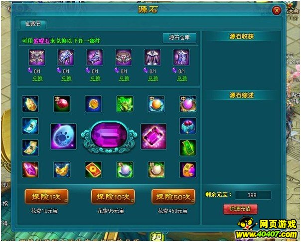 突然你的眼前一亮,原来还有这么多的任务和有趣副本任你翱翔,好,先点击“日常每天任务”,里面会有相关的等级任务介绍,你可以咬文嚼字的阅读,其实最重要的是要想 高级,你就得完成所有,再看看副本相关的洞窟,你不禁会流一地口水都是精品但是你要有足够的运气,当然有想有好的成就之前肯定要将战斗力和宝宝升上去。有元 宝的话得到装备最快捷径是1:点击游戏下面栏目“源石”如下图:
