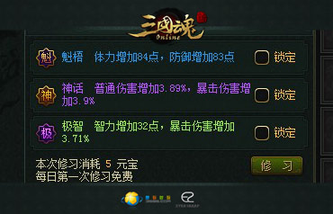 弓将在智力和武力方面堪称一流。由于只加智力或武力造成的伤害都不如直接加暴击伤害造成的伤害大,所以首推“极智”(既加暴击伤害又加智力)和“神话”(既加暴击伤害又加普通伤害)两大天赋。其次可考虑加暴击伤害的“好战”,至于“鬼魅”、“幸运”、“威武”和“睿智”皆可等闲视之。